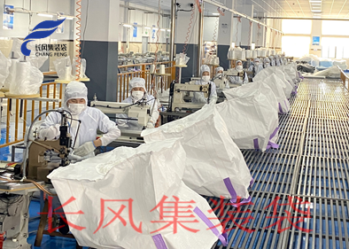 長(zhǎng)風(fēng)擁有行業(yè)領(lǐng)先的成套自動(dòng)化縫紉設(shè)備,高效的流水線作業(yè)流程,10萬(wàn)級(jí)清潔車(chē)間,擁有各類(lèi)熟練員工400余人,生產(chǎn)車(chē)間6.5萬(wàn)平米,生產(chǎn)設(shè)備680余套。